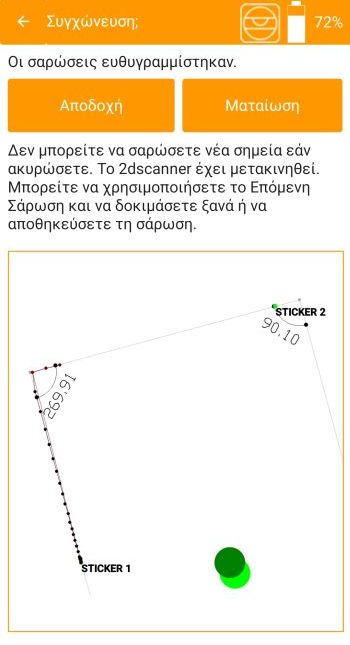 Χρησιμοποιώντας αυτήν την επιλογή, μπορείτε να επιλέξετε δύο σημεία που ανήκουν σε ευθείες γραμμές και να τα χρησιμοποιήσετε για να συνδυάσετε την επόμενη σάρωση.