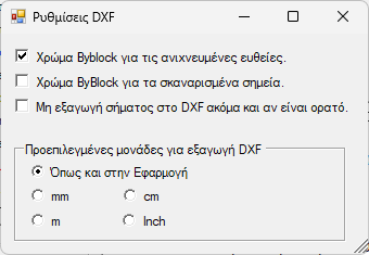 - Προεπιλεγμένες μονάδες για εξαγωγή DXF