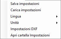 Qui puoi impostare l’unità di misura utilizzata per il progetto (mm, cm, m, inch). I valori delle varie impostazioni saranno convertiti automaticamente quando si cambia l’unità di misura.