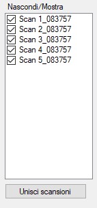 Con il tasto Unisci scansioni puoi unire tutte le scansioni visibili in una sola. Nella finestra apparirà una nuova scansione denominata “Unita…”.